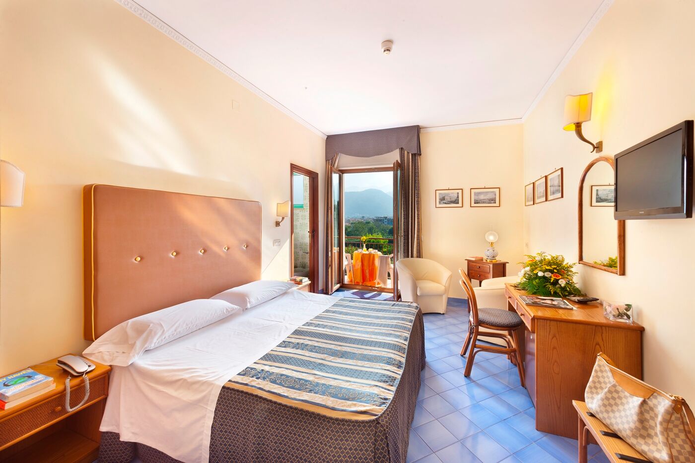 Am ruhigen Stadtrand von Sorrent, nur wenige Minuten vom historischen Zentrum entfernt, erwartet Sie das charmante Hotel Girasole – ein liebevoll geführtes Haus, das schon viele Jahre familiär mit viel Herz und Gastfreundschaft betrieben wird. Eingebettet in einen duftenden Orangenhain, findet man hier eine Oase vor den Toren des beliebten und weltbekannten Ortes. Der gepflegte Außenpool (wetterabhängig), umgeben von Blumen und Pflanzen, bietet eine entspannte Alternative zu den trubeligen Leben der Stadt. Eine Bar und eine Dachterrasse mit Panoramablick auf den Golf von Neapel und den Vesuv runden das Angebot ab.